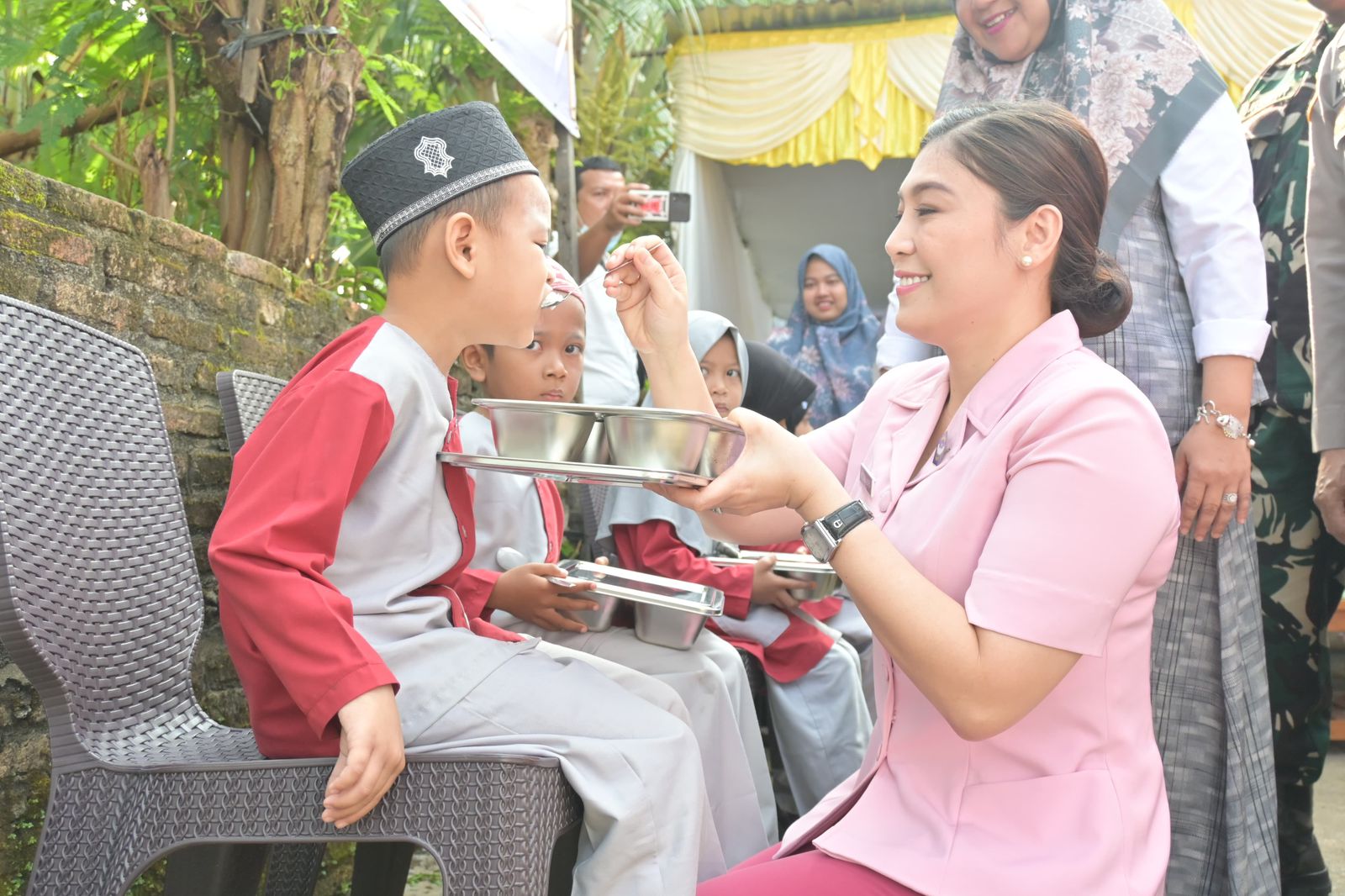 ​Suasana penuh kehangatan terlihat saat Ketua Bhayangkari Cabang Labuhanbatu Selatan, Ny. Olivia Aditya Sembiring, bersama pengurus Bhayangkari melakukan pengecekan langsung ke dapur SPPG. Tidak hanya memantau kualitas masakan, Ny. Olivia juga melepas armada distribusi dan ikut membagikan makanan secara langsung kepada para siswa.